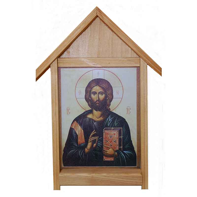 Durable icon shows Jesus holding the Gospels with His right hand raised in blessing; measures approximately 6 3/4 high x ″ 4 7/8″( visible).